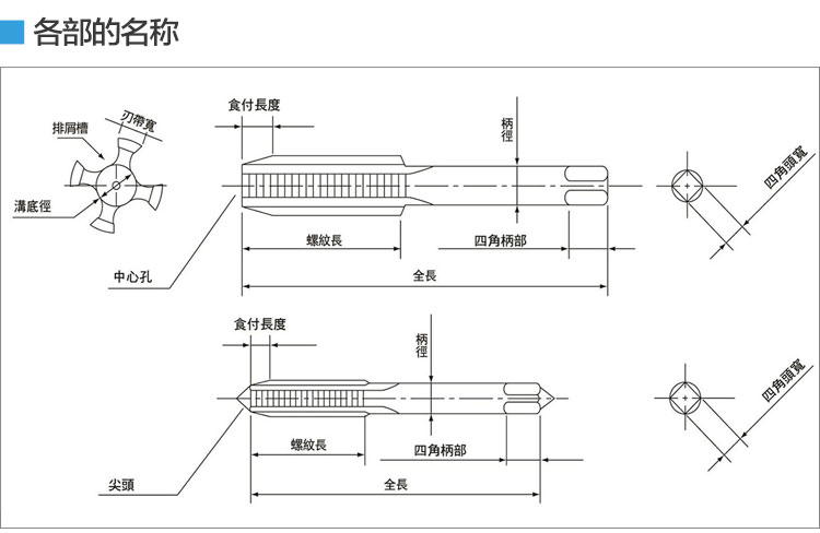 各種絲錐吃入部長度: